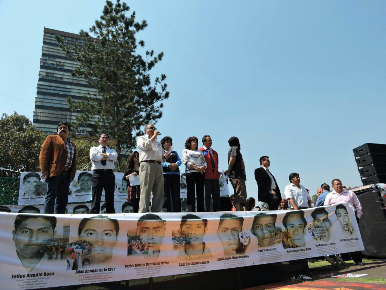Por su parte, Melitón Ortega, padre de Mauricio Ortega, uno de los 43 estudiantes desaparecidos, mencionó “Nuestra lucha no sólo es por encontrar a nuestros hijos, sino por el castigo a los culpables, la liberación de todos los presos políticos en México, el rechazo a las reformas estructurales, las cuales han venido afectando el bienestar de todos los mexicanos”.