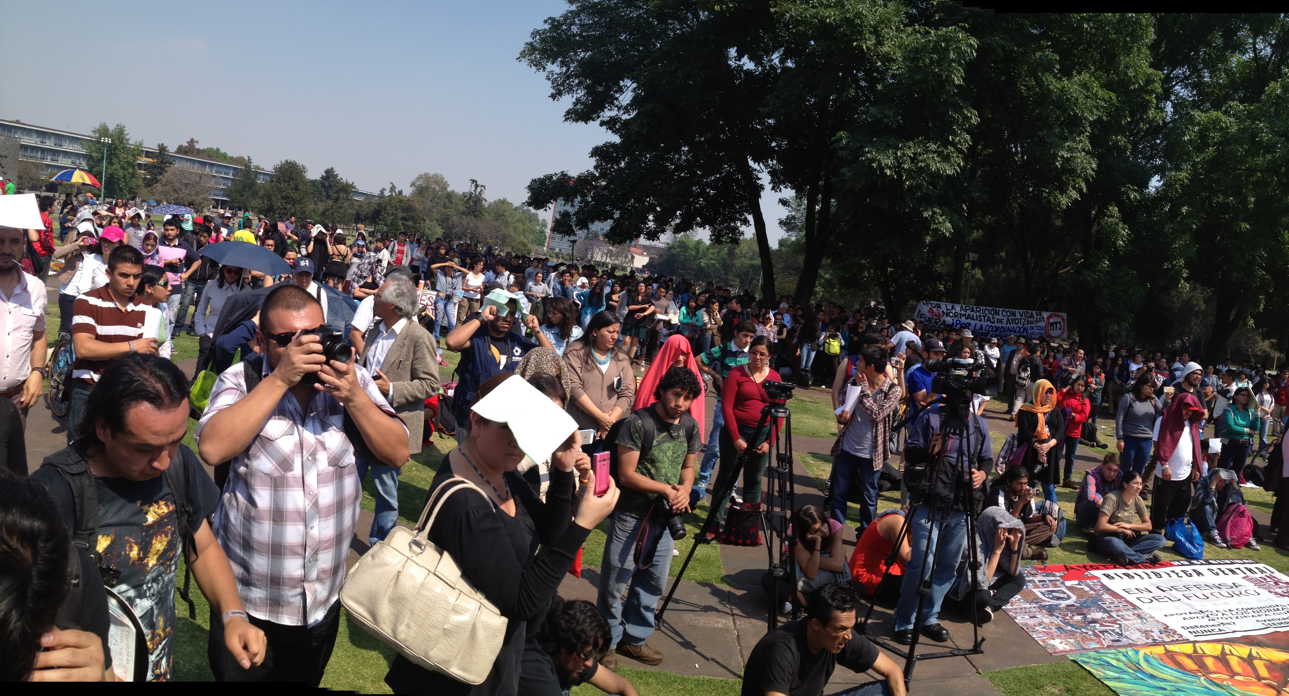 Ayer 19 de febrero, a medio día, en la explanada frente al espejo de agua de Ciudad Universitaria de la Universidad Nacional Autónoma de México (UNAM), se realizó un mitin-concierto en apoyo a los padres de familia de los 43 normalistas desaparecidos.