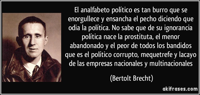 Y es que una sociedad politizada, es capaz de investigar, de inmiscuirse y contrastar ideas; debatiendo y proponiendo; organizándose y exigiendo para que cambien las situaciones actuales de la sociedad. Matizando a los políticos y a sus ideas y propuestas, en sus historias y sus acciones. Pues contrario a lo que piensa la vox populi no todos son iguales.